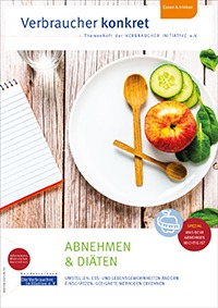 Mehr Informationen und Tipps für die Behandlung von Übergewicht bietet die neue Broschüre „Abnehmen & Diäten“ der VERBRAUCHER INITIATIVE. Sie beleuchtet außerdem verschiedene Abnehmkonzepte und sagt, woran geeignete Methoden zu erkennen sind. Das 16-seitige Themenheft kann für 2,00 Euro (zzgl. Versand) unter https://verbraucher.com/abnehmen-und-diaten-themenheft.html bestellt oder heruntergeladen werden.