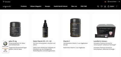 Das Sortiment reicht von Einzelprodukten bis hin zu speziell zusammengestellten Paketen, etwa für die Darmgesundheit. Alle Produkte werden aus 100% natürlichen, organischen Rohstoffen und Pflanzenextrakten hergestellt und sind vegan, gluten- sowie laktosefrei