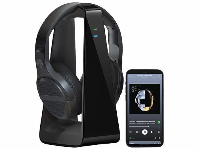 – Over-Ear-Stereo-Funkkopfhörer mit reichweitenstarkem Sender: bis zu 30 Meter
