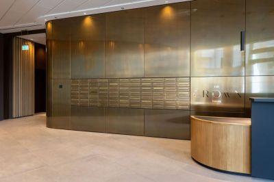 Edle Messingoberflächen und digitale, zentral gesteuerte Schließtechnik in einem exklusiven Wohnbauprojekt