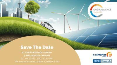 Am 25. Juni 2026 findet die 10. Verleihung des Energiewende Awards im Rahmen von The smarter E Europe, Europas größter Messeallianz für die Energiewirtschaft, in München (The smarter E Forum, Halle C5, Stand C5.550) statt. Bei dieser Veranstaltung werden die innovativsten Energieversorger gefeiert und geehrt, die außergewöhnliches Engagement und Fortschritte bei der Förderung der Energiewende gezeigt haben.