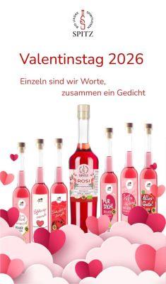 Ergänzend dazu bietet die Manufaktur zum Valentinstag 100 ml Flaschen mit unterschiedlichen Glückwunschetiketten an. Aufschriften wie „Schön, dass es Dich gibt“, „Lieblingsmensch“ oder „Für Dich“ machen aus dem Likör ein persönliches Geschenk. Weitere Motive ergänzen das Sortiment.