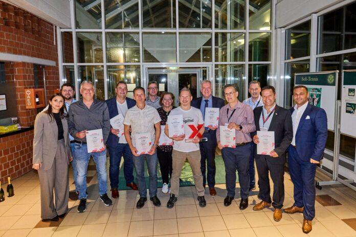 Und das sind die Lexware Top 10 Partner 2025: (vlnr) Marina Wallner (Lexware), Zlatko Zdravkovic (Lexware), Marcus Sommer (CMO Internet Dienstleistungen GmbH), Oliver Menzel (BOME GmbH), Thomas Geisler (DOT), Dirk Andreas (@ndreas EDV-Service), Christiane Hartramf (IT & Service Hartramf), Roland Berger (MXP GmbH), Frank Richter (Richter Learning Systems), Alexander Dilly (Erfolgsbüro Alexander Dilly), Frank Behrens (SGB-IT OHG), Sten Alscher (IT Systeme Alscher), Attila Mekker (Lexware)