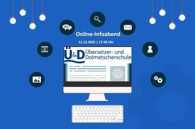Die Übersetzer- und Dolmetscherschule lädt am 11.12.25 zum Online-Infoabend ein. Sie informiert über die Online-Ausbildung zum staatlich gepr. Übersetzer (m/w/d) und den Kurs Deutsche Rechtssprache.