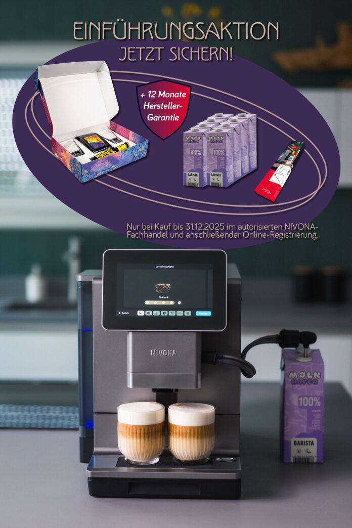 Zur Markteinführung der neuen 9000er Serie starten der Hersteller von Premium-Kaffeevollautomaten Nivona aus Nürnberg und Mølk, der Frankfurter Spezialist für hochwertige pflanzliche Milchalternativen, eine gemeinsame Sonderaktion. Käufer eines Kaffeevollautomaten aus der neuen 9000er Serie erhalten bis zum 31. Dezember 2025 nach Online-Registrierung ein exklusives Premium-Paket mit acht Litern Oat Mølk: Barista-Hafermilch und weiteren hochwertigen Extras im Gesamtwert von ca. 140 Euro
