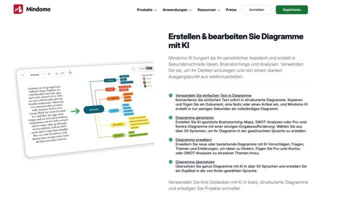 Mindomo verbindet klassische Mind-Mapping-Funktionen mit modernen KI-Technologien. Teams erhalten automatisch strukturierte Vorschläge für Themen, Unterthemen und Beziehungen, wobei der visuelle Ansatz das Denken erleichtert und kreative Prozesse fördert. Mit automatischer Ideengenerierung, der Möglichkeit zur Echtzeit-Zusammenarbeit und einer intuitiven Oberfläche unterstützt Mindomo die effiziente Planung komplexer Projekte in hybriden und verteilten Arbeitsmodellen.