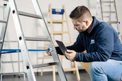 Mit dem Prüfservice INSPECT stellt KRAUSE einen umfassenden Vor-Ort-Service bereit. Dieser unterstützt Unternehmen dabei, ihre Prüfpflichten zuverlässig und ohne zusätzlichen internen Aufwand zu erfüllen. Die Experten prüfen ein breites Spektrum an Arbeitsmitteln: Neben Leitern, Tritten und Fahrgerüsten werden ortsfeste Steigleitern, Podesttreppen und Regalanlagen ebenso kontrolliert wie Sonderkonstruktionen und technische Einrichtungen, etwa Türen, Tore, kraftbetätigte Fenster oder maschinelle Anlagen. Auch persönliche Schutzausrüstung gegen Absturz (PSAgA) und Flurförderzeuge lassen sich in die regelmäßigen Prüfabläufe integrieren, sodass alle relevanten Arbeitsmittel in einem abgestimmten Prozess abgedeckt werden.