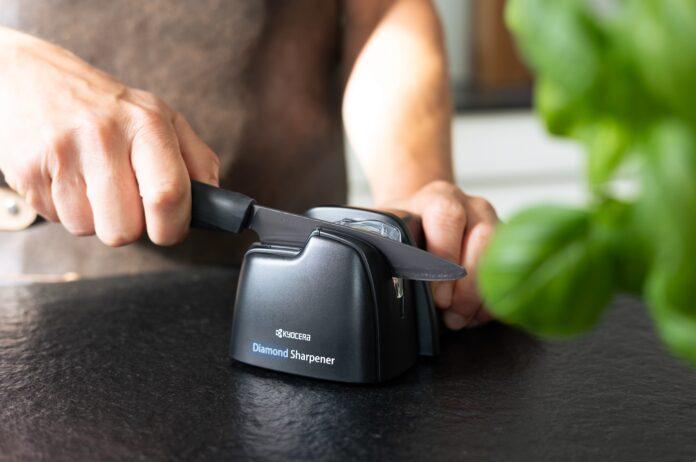 Der elektrische Messerschleifer DS-38 von Kyocera bietet eine komfortable Lösung für dauerhaft scharfe Klingen. Ausgestattet mit einer diamantbeschichteten Schleifscheibe schärft er sowohl Keramik- als auch Stahlmesser. Der voreingestellte Schleifwinkel sowie die einfache Ein-Knopf-Bedienung ermöglichen eine sichere und leichte Handhabung.