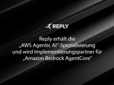 Zudem wurde Reply als „Implementation Partner“ für die Markteinführung von „Amazon Bedrock AgentCore“ benannt. Über die Plattform können skalierbare KI-Agenten entwickelt und betrieben werden, die mit Unternehmensdaten und -systemen integriert sind. Mit „Amazon Bedrock AgentCore“ lässt sich die Umsetzung intelligenter Assistenten im großen Maßstab vereinfachen und sicher gestalten. Die Agenten können mit bestehenden Lösungen interagieren, Informationen in Echtzeit analysieren und komplexe Prozesse automatisieren. Als einer der ersten Implementierungspartner begleitet Reply Kunden bei der Einführung von KI auf Basis dieser Plattform: mit autonomen, integrierten Agenten, die planen, zusammenarbeiten, Tools nutzen, Aufgaben ausführen und sich kontinuierlich verbessern.