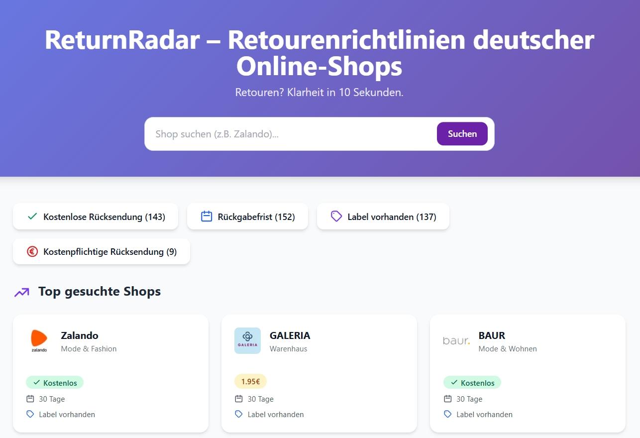 Viele Online-Käuferinnen und -Käufer müssen bislang lange suchen, um Rücksenderegeln zu finden. Unterschiedliche Bedingungen, versteckte Gebühren und unklare Etikett-Regeln erschweren den Überblick. ReturnRadar vereinfacht diesen Prozess, indem es geprüfte Informationen strukturiert, vergleichbar und verständlich darstellt.