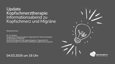 Migräne und Spannungskopfschmerz: Das Algesiologikum München informiert am 04.03.2026 online über moderne Therapien und Wege aus der Schmerzspirale. Expert*innen antworten live. Teilnahme kostenfrei.